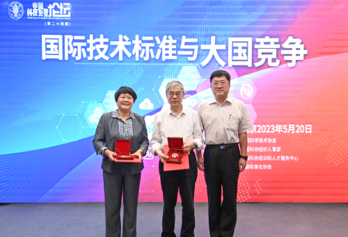 5月20日,以“国际技术标准与大国竞争”为主题的第二十四期中国科技会堂论坛在京举行。中国工程院院士、中国工程院原副院长、中国标准化专家委员会主任邬贺铨,中国标准化协会理事长于欣丽分别作主题报告;国家高速列车青岛技术创新中心主任梁建英,中兴通讯副总裁、技术规划总经理赵志勇共同进行互动交流。中国科协党组成员、书记处书记王进展出席论坛并为主讲嘉宾颁发荣誉证书和纪念章,中国科协党组成员罗晖出席。中央和国家机关有关部委、中央企业的百余位省部级、司局级领导干部参加论坛。